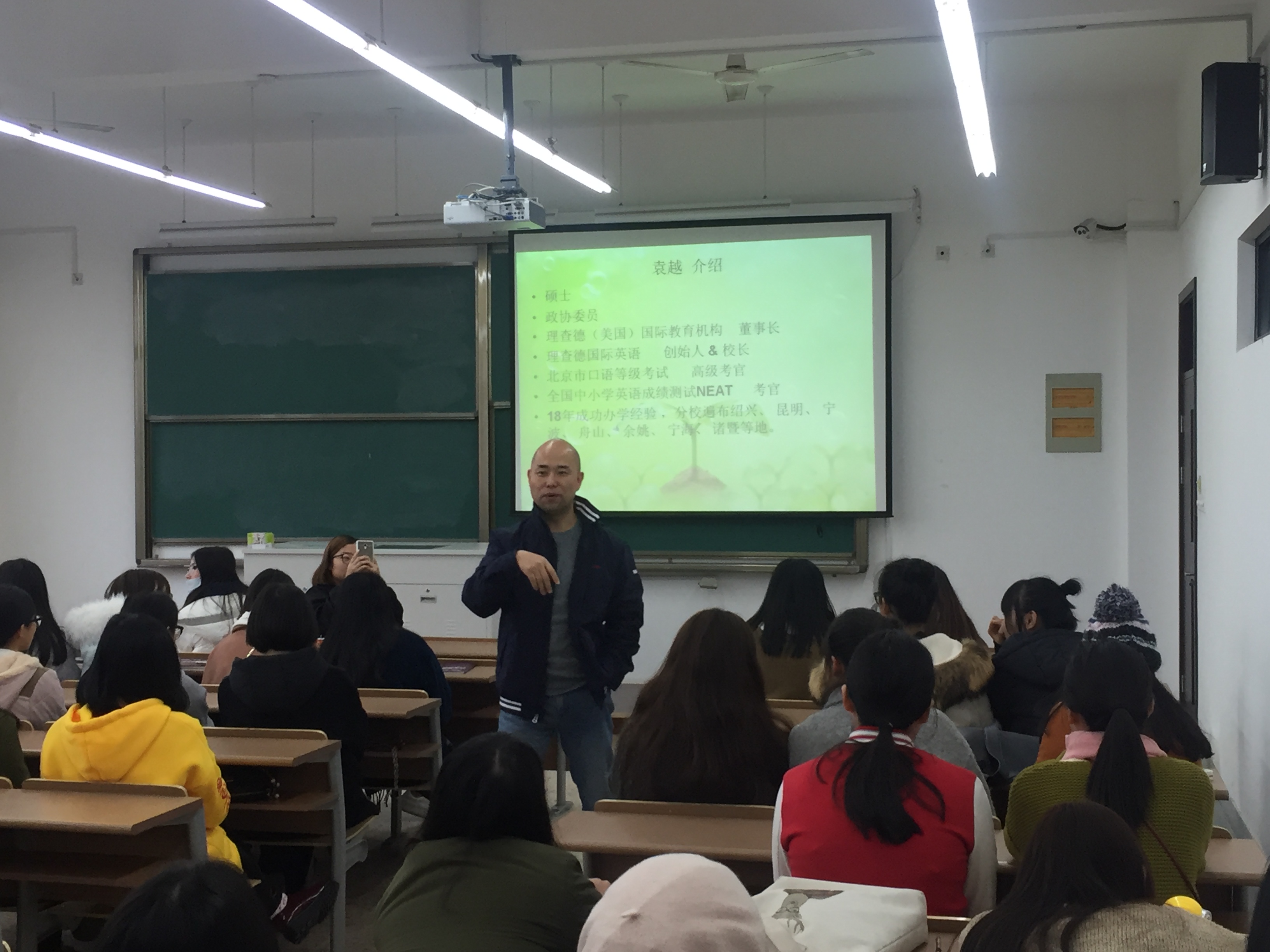 11月23日下午一点,在外语楼4-402成功举行了一场关于英语教师素养培养的讲座。此次讲座由理查德国际英语学校校长袁越主讲,整场讲座气氛活跃,同学们受益匪浅。