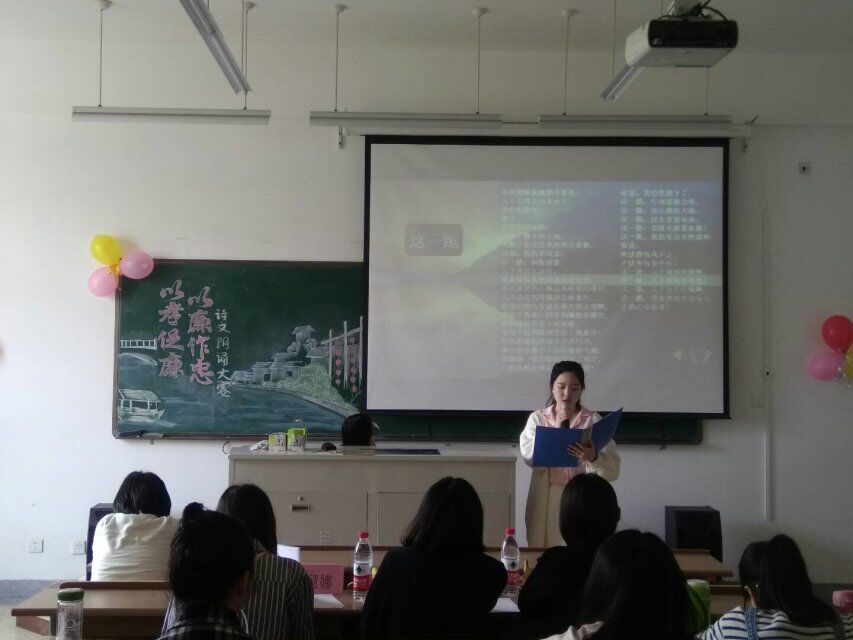 比赛开始后,选手们依次上台开始了声情并茂的朗诵表演。无论是深情款款的《目送》,还是汹涌澎湃的《大堰河》,选手们都掌握的游刃有余,情感收放自如。大家的表演不分伯仲,有人绵言细语,似小桥流水般娓娓道来;有人掷地有声,似千军万马般激情澎湃,充分向大家展示了自己深厚的语言功底。