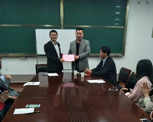 在会议结束前,潘书记对此次会议做了总结,并聘请鲁兴化董事长为人文系兼职教授。