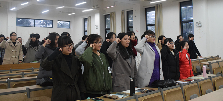大会最后潘成刚书记分享了他总结的六点要求,对大家提出了建议与希望,与大家共勉:一、认清就业形势,做到有自信。二、不断学习,不断提升道德修养。三、做到理论学习与实践相结合。四、实现自身价值与服务社会相统一。五、不断艰苦奋斗,实现崇高理想。六、树立“母校培养我成才,我为母校添光彩”的责任意识。大会的最后,潘成刚老师要求全体党员宣誓,重温入党记忆。在响亮的宣誓声中,大会圆满落下帷幕。