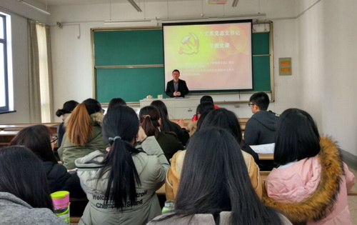 12月16日,由人文系党总支书记潘成刚主讲的专题党课在3-402教室举行,全体学生党员参加。潘书记围绕习近平在全国高校思想政治工作会议上的讲话精神,展开理论和实践的讲解。潘书记指出,学生要成长成才,离不开科学的思想基础与坚定的理想信念;要实现自我价值,就必须勇敢地肩负起时代赋予的重任,自觉地将个人的命运与国家的发展结合起。提倡大学生应将思想政治工作与专业及生活相融合。在学习自身专业,实践自身专业的过程中认识到我党在建设发展中的重要思想。