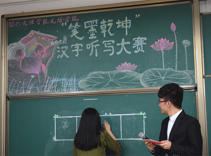 统分期间,我系汉语言文学教研室主任刘金荣老师为本次比赛作了简短的总结,刘老师认为:本次比赛的举办,有利于激发广大学子对中国传统优秀文化浓厚的学习兴趣,能够培养学生规范写汉字的意识,提高学生书写汉字的水平。随后比赛结果正式公布:吴思程同学荣获一等奖,林雨蒙同学获得二等奖,龚茜同学位居第三,获得三等奖。于成冠、王芷馨、沈杰、王婷婷、吴雅琪五位同学获得优胜奖,刘金荣老师、马芹芬老师、团总支副书记胡芳慧、学生会主席苏杭和副主席石家怡分别为获奖选手颁奖。在热烈的掌声中,“笔墨乾坤”汉字听写大赛圆满结束,让我们对获奖同学致以最诚挚的祝贺。