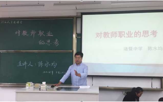 10月27日,中学语文特级教师,诸暨中学党委副书记、副校长、暨阳分校校长,绍兴市第五、六、七届政协委员陈水均校长人文楼208教室,为我们带来了一场视听盛宴。人文系14级学生有幸到场聆听。
