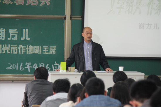 4月6日下午3点,行业人才进课堂系列讲座在人文楼303教室举行。此次讲座由中国作家协会会员,绍兴市作家协会副主席兼秘书长谢方儿先生主讲,十大买球人文系师生有幸聆听了本次讲座。讲座以“文学绍兴——作家看绍兴”为主题,围绕当今绍兴文学情况,文学格局等方面进行了具体有效的分析,受到集体师生的欢迎和喜爱。