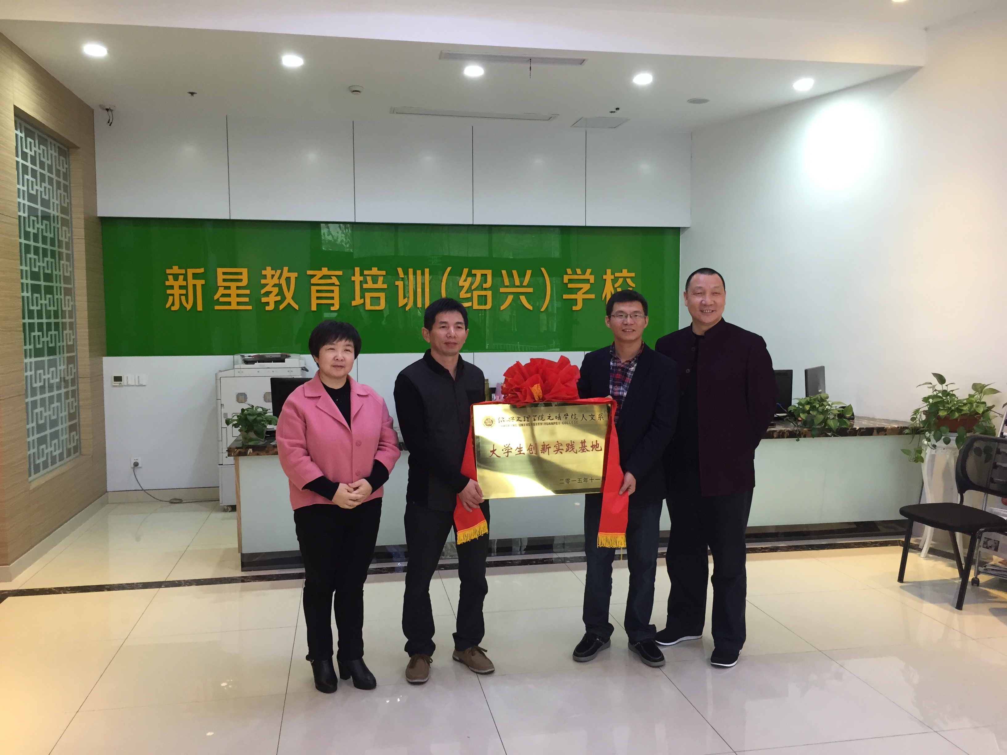 11月16日,我系大学生创新实践基地授牌仪式在新星教育培训学校举行,系党总支书记潘成刚老师、汉语言文学教研室主任刘金荣教授、新星教育培训学校李红蓉校长出席。