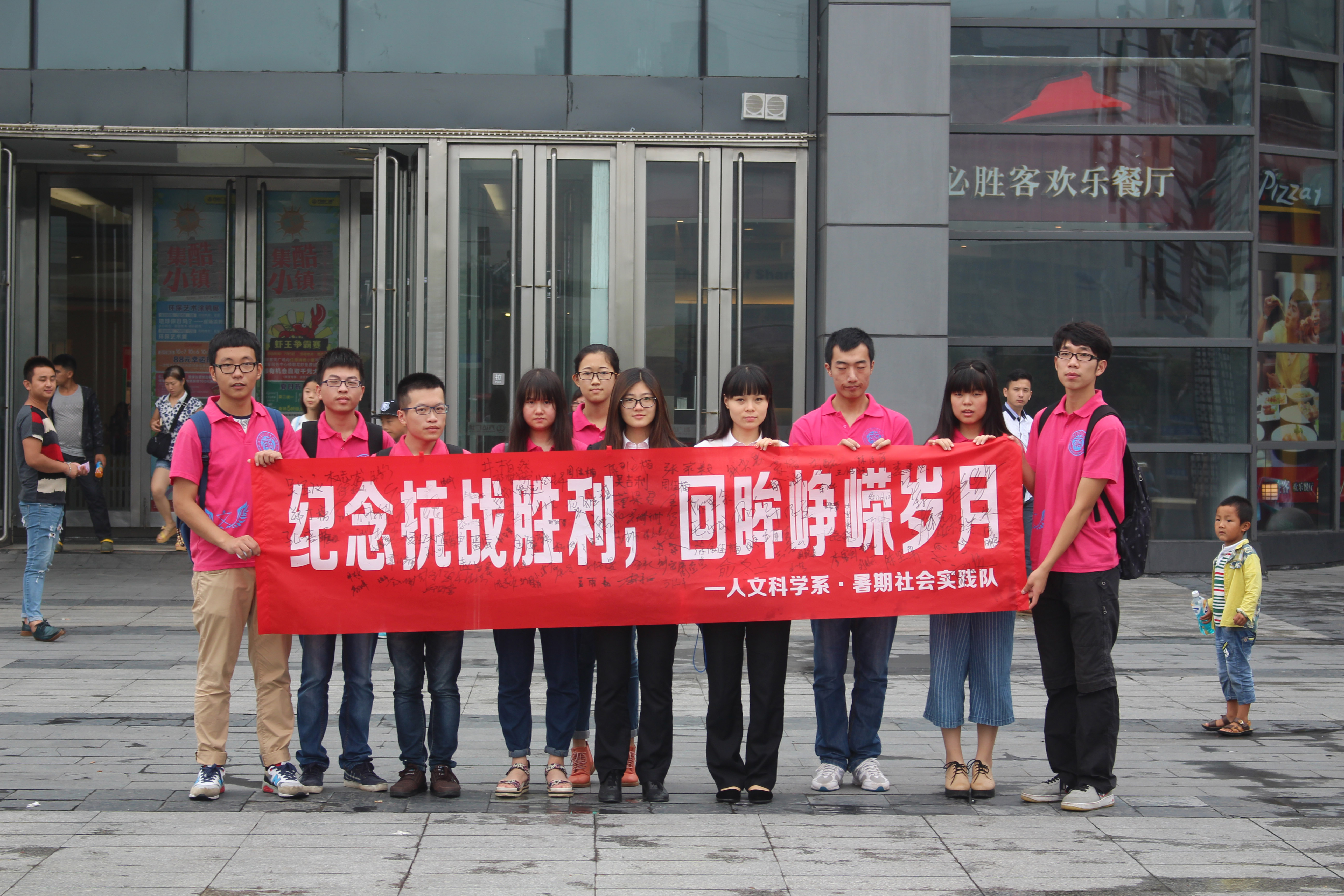活动后,实践队成员们与万达广场相关负责人合影留念,记录下珍贵回忆的同时也表达了对万达广场提供场地的感谢。本次活动,让部分社会大众重新关注起抗战,及对抗战老兵现状的关注,而实践小队的老兵探访活动也依然将继续。满满的签名,是对历史和所有抗战老兵的敬意,可谓是收获颇丰。