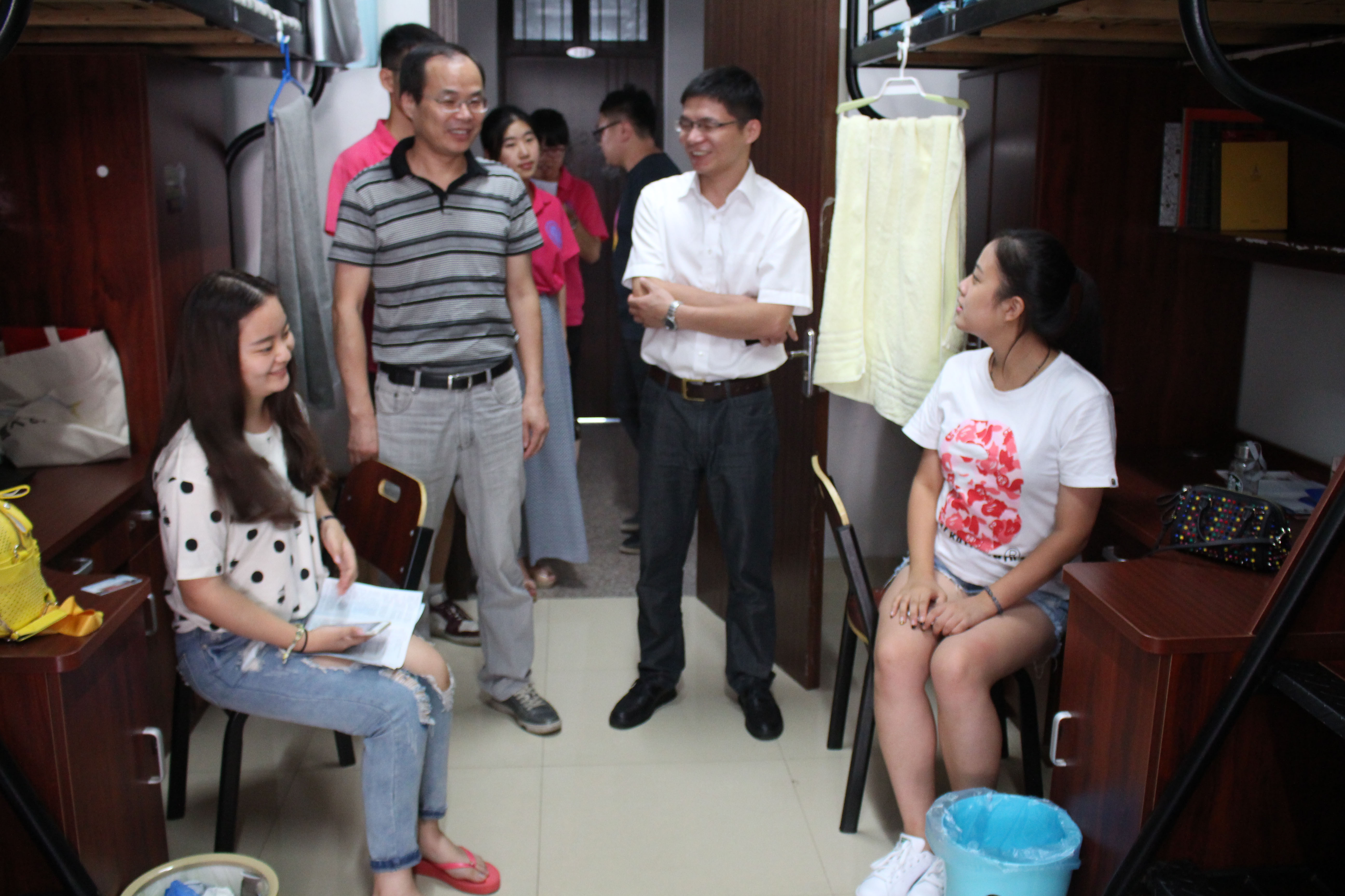9月10日下午,在我系辅导员马敏敏老师的带领下,孙斌祥副院长,系党总支书记潘成刚老师前往学生公寓看望新生,了解新生到校后的学习与生活情况。