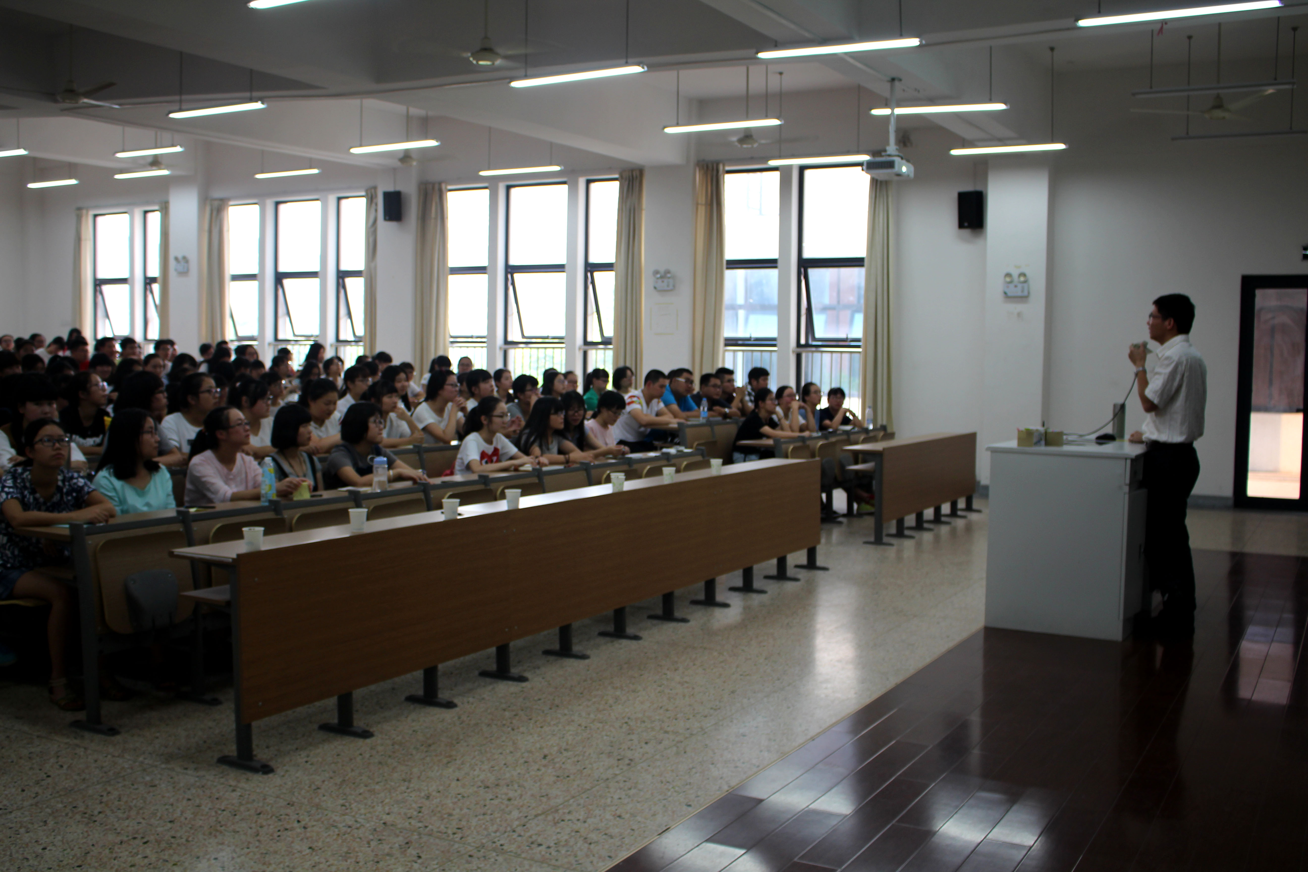 9月11日15时,我系新生大会在经管南楼207教室召开。本次主讲人是我系党总支书记潘成刚老师,2015级276名新生均到场聆听本场讲座。