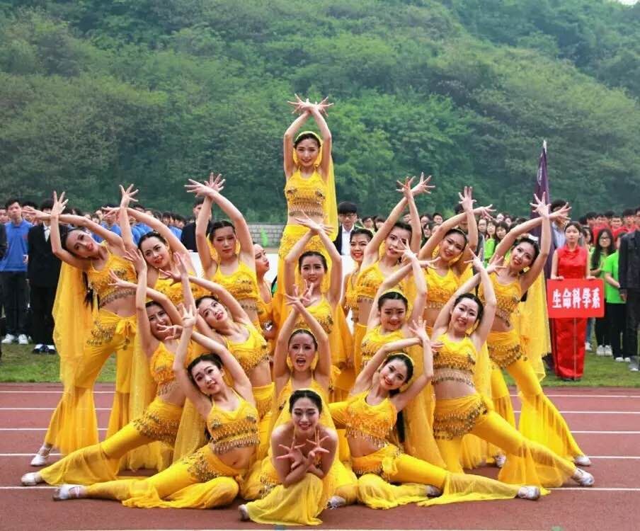 本届院运会开幕式一改传统方阵形式,各系均以排舞助威比赛。有的身着旗袍,尽显江南女子婉约,有的激情热舞,感染四座。而我系的印度舞更是把现场推入高潮,她们舞步轻盈,以柔美的肢体语言向我们缓缓道来美丽的故事,最后以花朵造型绽放,现场掌声连连。