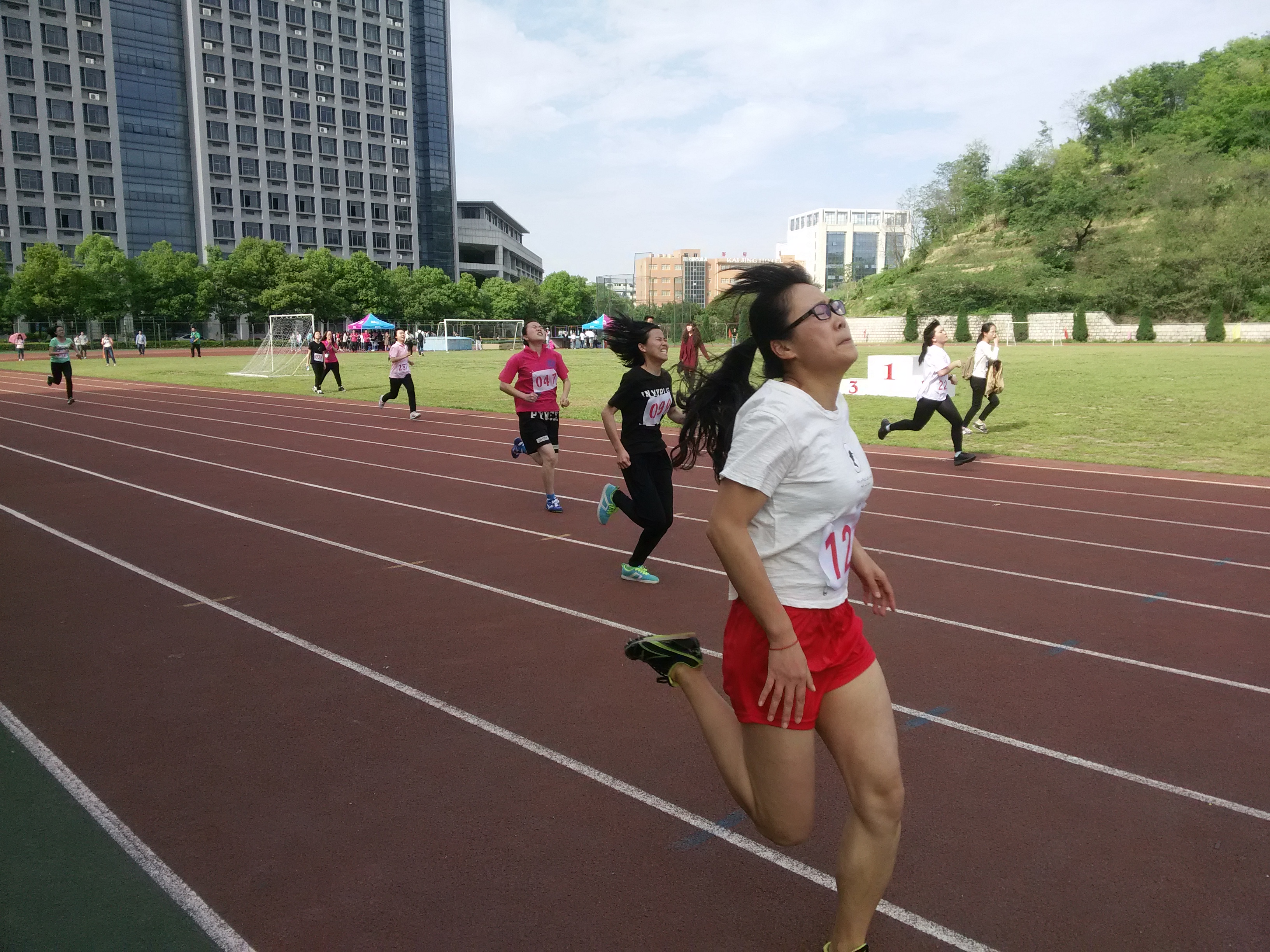 舞蹈暂告段落,激烈的比赛敲响了战鼓。运动场上运动员龙腾虎跃,奋勇争先,观众席上观众激情彭湃,呐喊震天。整个校园因为这些青春的身影显得更有活力和激情。百米冲刺是运动员追求速度与激情的表现;八百米是运动员不断挑战自我的求索;一万米长跑是运动员耐力与毅力的比拼。奔跑,追逐,冲刺,我系的运动健儿们一次次用他们的行动来诠释了人文的精神。滑君一同学的执着坚定,10000米,漫漫征途的坚持只为告诉我们没有比脚更长的路,没有比人更高的山。4乘400的赛场上我系四位同学的奋勇拼搏,小小木棒的传递,向所有人展示了团结和友谊的力量。抬腿,跨步,越栏,落地,我系黄观源同学一次次跨越了一个又一个的障碍,夺得女子100米栏的桂冠,诠释了年轻便是全力以赴。还有太多的运动健儿们,他们驰骋赛场,追求着运动的精神:更高,更快,更强,挑战着自我的极限。