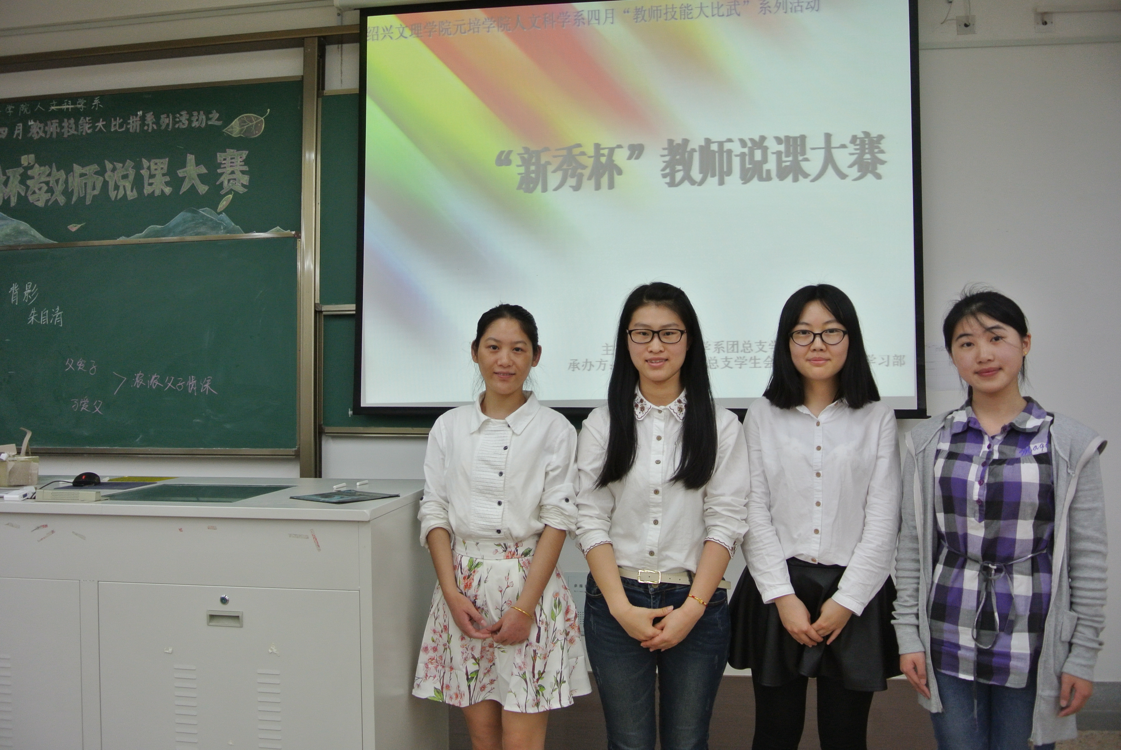 待所有选手表演结束,评委老师对选手一一进行了点评,在对选手们给予肯定的同时,也提到了语速等尚有问题的地方,鼓励选手积极改善。最终成绩揭晓,前三名分别为:2号选手周金璐,10号选手鲍蕾娟,8号选手张雨嘉,“最佳风采教师奖”得主为1号选手蒲立丰,本次大赛至此圆满结束。