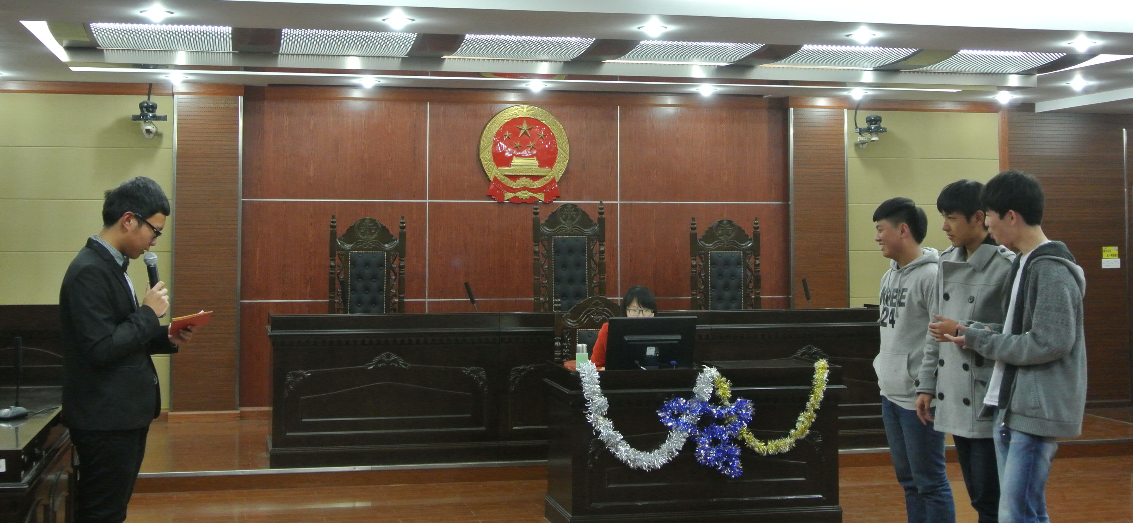 “识质蕙心,等你来战”。随着大屏幕上的VCR开始播放,全场进入了比赛的氛围。12月1日晚6:30,我系“识质蕙心”班级知识竞赛决赛在人文楼模拟法庭正式举办。本次比赛由我系团总支学生会学习部和网络技术部承办,邀请了陈金东老师、刘金荣老师以及学生代表陈慧、朱斯梦担任比赛评委。音乐声停,掌声响起,主持人宣布比赛开始。