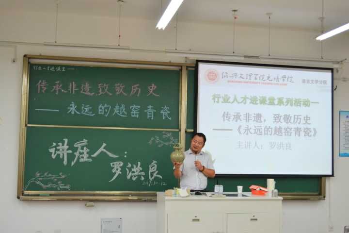 短短的一次讲座,虽然仅仅道出青瓷文化的一角,但是却向全体同学打开一扇面向青瓷文化的窗口,罗老师带领我们欣赏领略了青瓷的绝美风景,让我们全体同学体会到青瓷的美妙。讲座结束,同学们的掌声不断,大家都为青瓷文化----这个世界非物质文化遗产和中国悠久灿烂的文明感到骄傲和自豪。