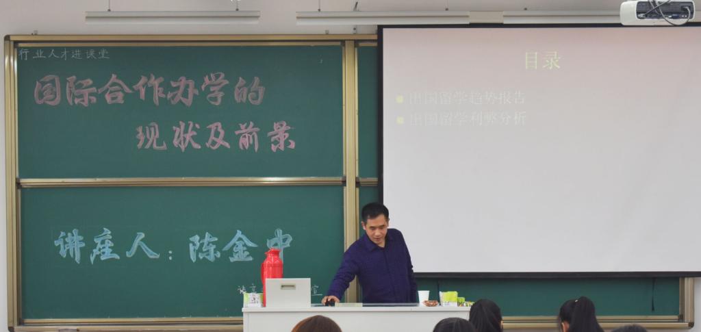 当留学成为一个热门话题,当出国成为一个梦想。越来越多的人发出了“世界那么大,我想去看看”的呼声。在10月19日下午两点于4号教学楼311教室举办的“国际合作办学的现状及前景”讲座中主讲人绍兴文理学院副教授陈金中老师围绕“出国留学”这一话题为同学们详细分析了出国留学的趋势及利弊,让同学们对出国留学有了更为深刻的认识。语言文学分院多名学生参加了这次讲座。