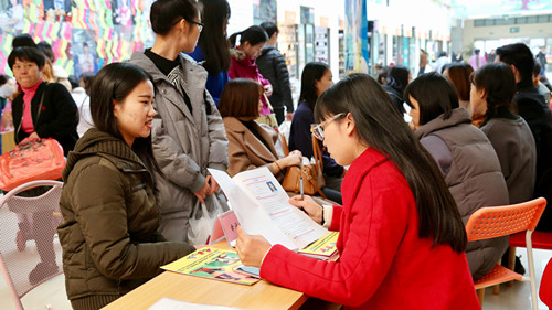 招聘会现场,学生们踊跃投出简历