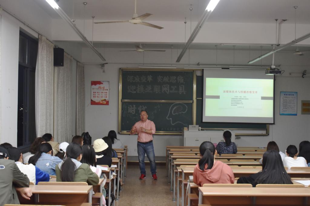 在我们身边有一张神奇的“大网”,叫做互联网,随着网络信息技术和网络经济的发展,互联网已经和人们合二为一了,网络步入了社会,而我们进入了网络。4月11日晚上18点30分举行了由全球修辞学会媒介文明研究会副会长兼秘书长、绍兴市网络文化协会秘书长、绍兴市网络舆情研究中心主任何海翔教授主讲的《深度变革,突破思维,迎接互联网工具时代》讲座,语言文学分院的学子们参加此次讲座。