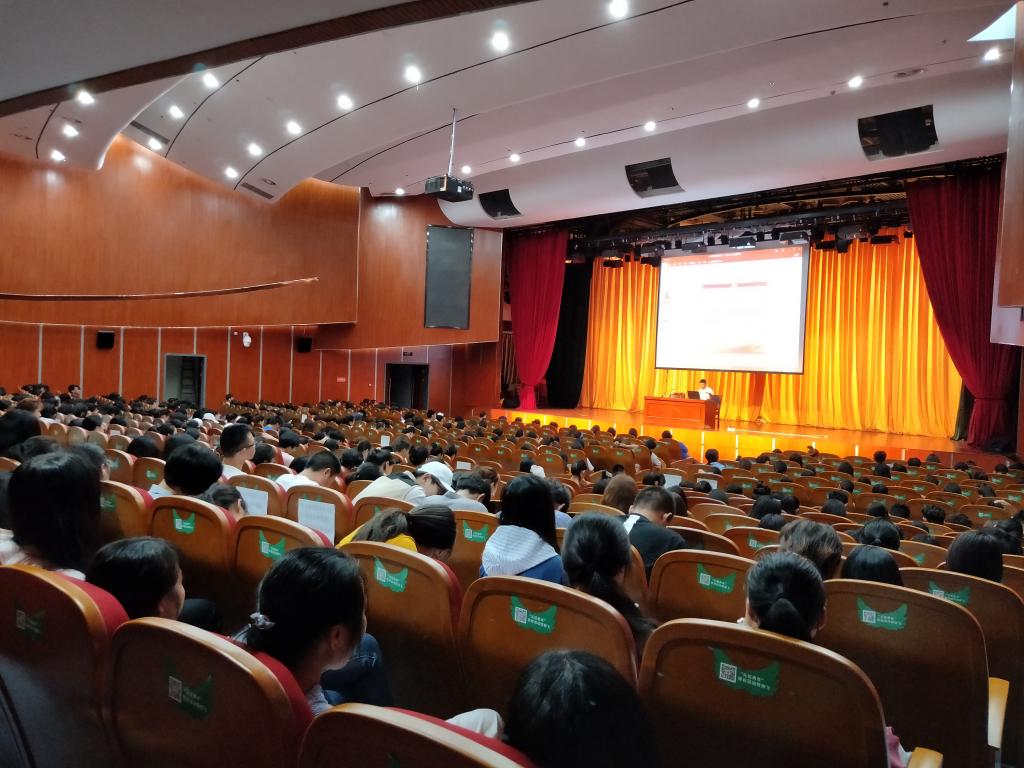 9月25日晚19:30,语言文学分院2018级新生入党启蒙教育大会在国际交流中心报告厅举行。本次会议由语言文学分院党总支书记潘成刚主讲,分院2018级全体新生参会聆听。