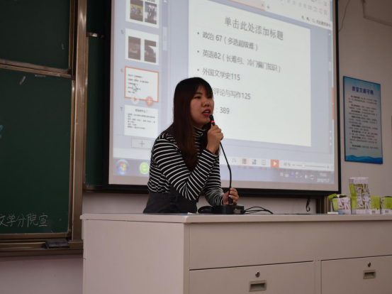 11月7日下午两点半,语言文学分院考研动员会在在教学楼4-305举办。大会由许婷婷老师主持,大三全体考研学生参加此次大会。