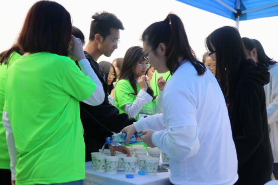 比赛当天凌晨四点,语言文学分院的志愿者们集合前往比赛现场。比赛全程,从起点的曹娥江大闸到终点蓝印时尚小镇,被分成15组的108名志愿者,认真坚守在属于自己的岗位上,每隔1.5公里就会看到我们的志愿者们身着白色志愿服,为参赛选手提供物资补给及救助服务。他们努力工作的身影让白色志愿服成为本次马拉松的靓丽风景线。