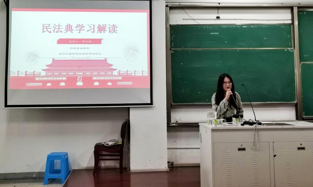 11月11日14:00,语言文学分院在1-207教室举行了“民法典学习解读”讲座,本次讲座由法制宣讲团成员周文佳主讲,语言文学分院20级学生皆准时参加。