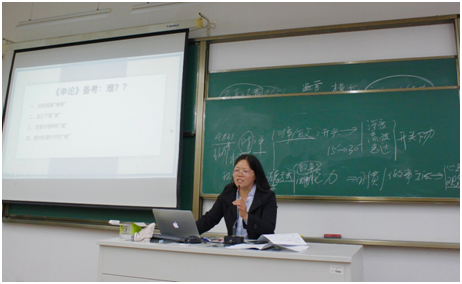 之后马老师从各种实景真题入手,全方位、多角度的讲解了考试中我们需要注意的地方。她强调要找到复习重点,不能盲目相信网上所谓的必过课程,“你们要具备快速阅读能力,归纳备考能力,这都是必不可少的。”马老师如是说道。在讲座的最后,马老师指出最重要的还是努力坚持,端正自己的心态观念,不能有丝毫的松懈。