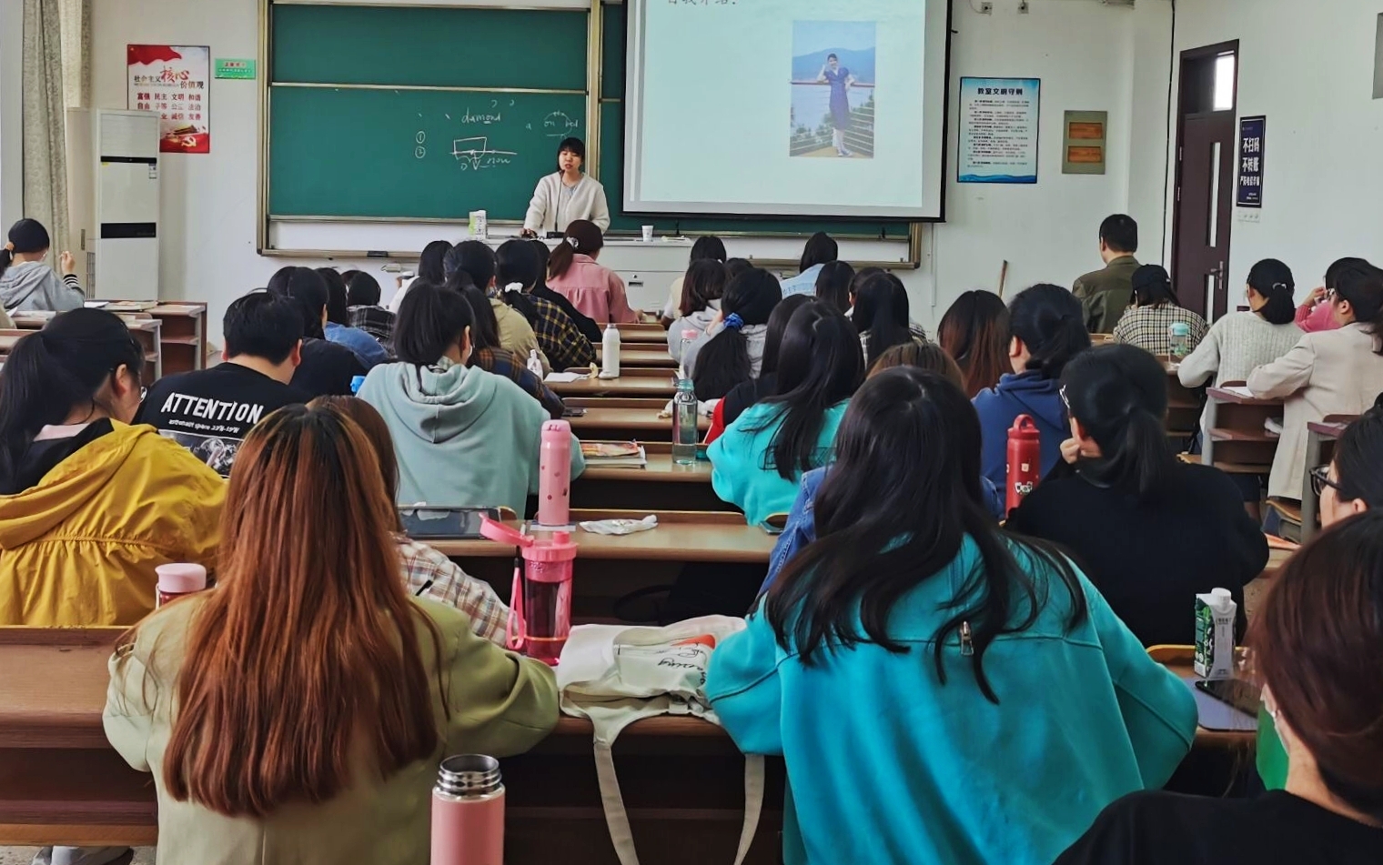 4月20日8:30,语言文学分院在4-402教室举办了“行业人才进课堂”讲座,本次讲座以“人教版初中英语教材与《新概念英语》的本地化对接”为主题,由绍兴市柯桥区安昌中学英语教师曹慧主讲,语言文学分院外语1801、外语1802班学生皆准时到场。