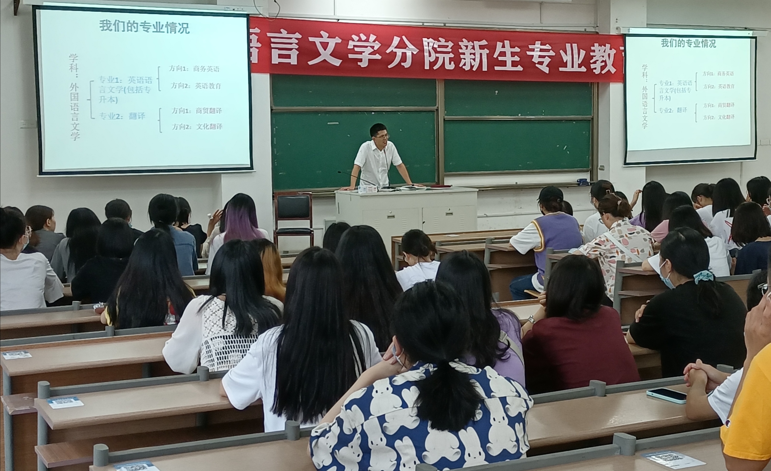 9月9日9:00,语言文学分院分别在1-207教室、1-209教室开展新生“专业教育”讲座。本次课程分别由语言文学分院刘金荣、刘义主讲,语言文学分院21级新生皆准时参加。
