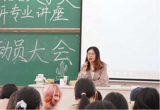 最后,由许婷婷老师为大家分析了当前考研的形势。她指出,近年来考研人数不断上升,但录取人数却没有太大变化,可见考研是一件困难的事情。许婷婷老师提醒同学们,应当及早开始准备工作,确定自己的学校和专业。她还表示,学校会通过开放考研自习教室以及图书馆专用位置等措施来支持同学们的考研。