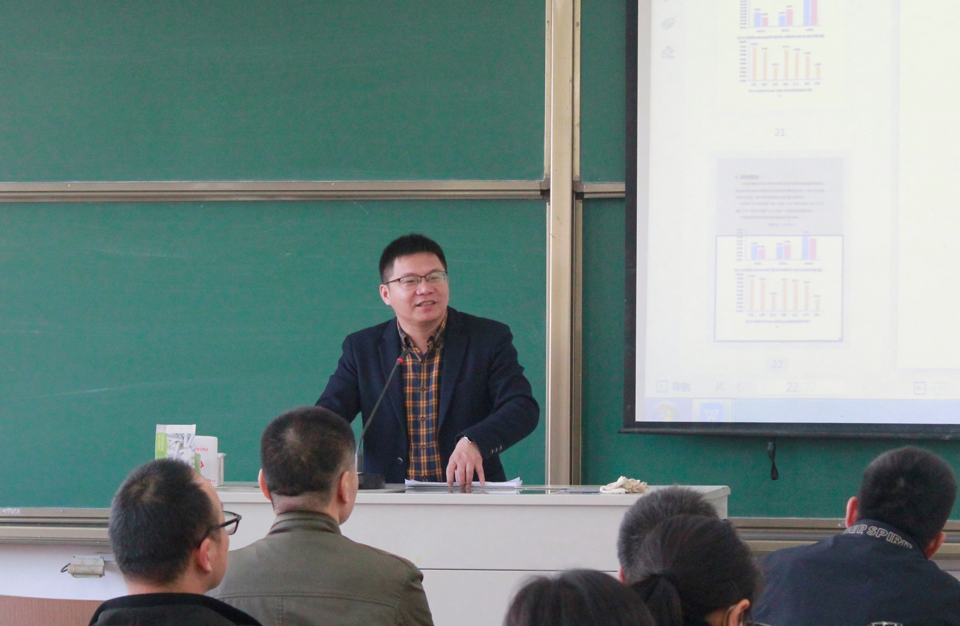 刘义就本学期全覆盖式期中教学检查做了相关部署和要求,希望老师们以查促改,切实提高教学业务水平。还就2022版人才培养方案修订工作、2022春季教学任务落实情况和毕业论文指导工作等做了一一说明。