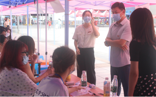 上午10点,分院党总支书记朱磊、副书记俞路来到迎新现场,走访并慰问参与迎新工作的班主任、辅导员与学生志愿者们,详细了解分院迎新工作,询问新生报到及分院疫情防控工作落实情况。朱书记对分院迎新工作给予充分肯定,面对迎新的班主任他指出,要为新生提供尽可能周到的咨询和服务,让新生感受分院人文关怀,帮助新生尽早适应大学生活。