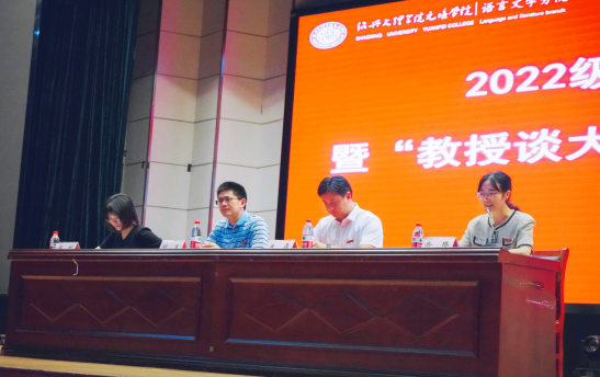 刘义从人才培养定位、课程开设、职业规划等方面对外国语大类专业进行了简要介绍;陈利从为什么学中国语、怎样学好中国语、学好中国语有什么用三个方面对中国语言文学类专业作了专业介绍。