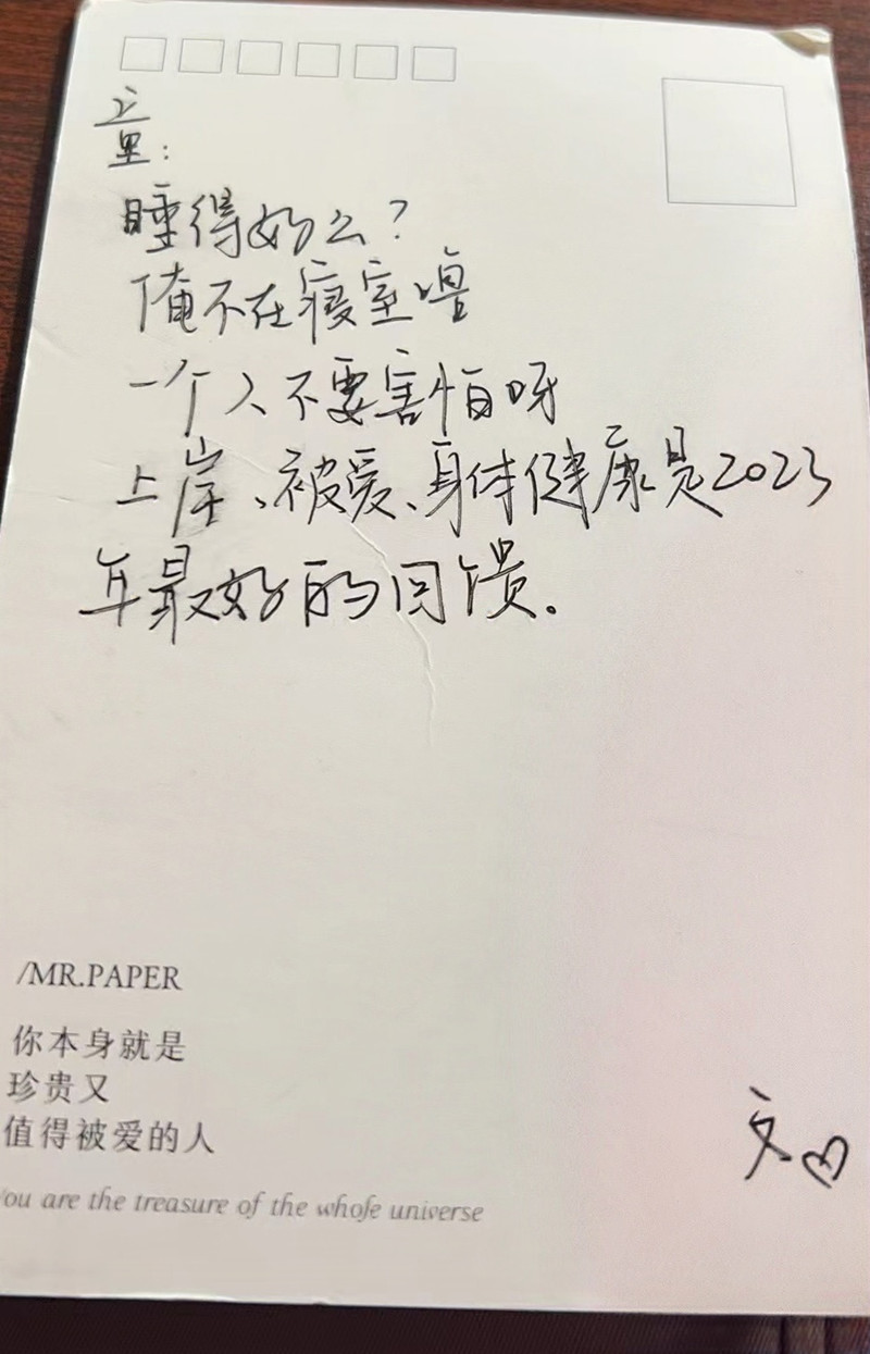临近初试,全国大面积爆发疫情,室友们提前离校,而徐童仍然要在学校坚守到最后一刻。“我的室友们很可爱,她们把一些鼓励的话语写在纸条上,放进我不同衣服的口袋中。”拉开抽屉,徐童找到了室友为她准备的“心意”明信片,“这些是我不经意间发现的小惊喜,它们在我初试前最难捱的时刻,给予了我温暖的力量。”