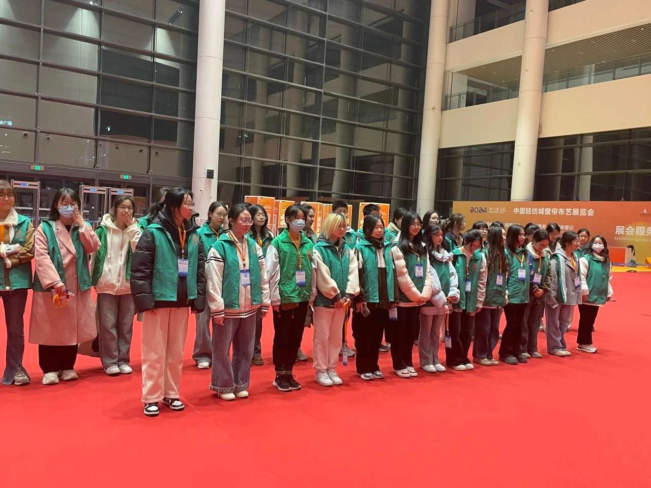 第十三届绍兴柯桥中国轻纺城窗帘布艺展览会将于3月14—3月17日在绍兴国际会展中心(新馆)举办。本次志愿服务作为语言文学分院劳动教育系列活动,经过前期的宣传,共有57位志愿者参与到这支队伍里,他们积极配合工作,确保为参观者提供周到细致的服务,用行动诠释着新时代青年的劳动使命与责任担当。