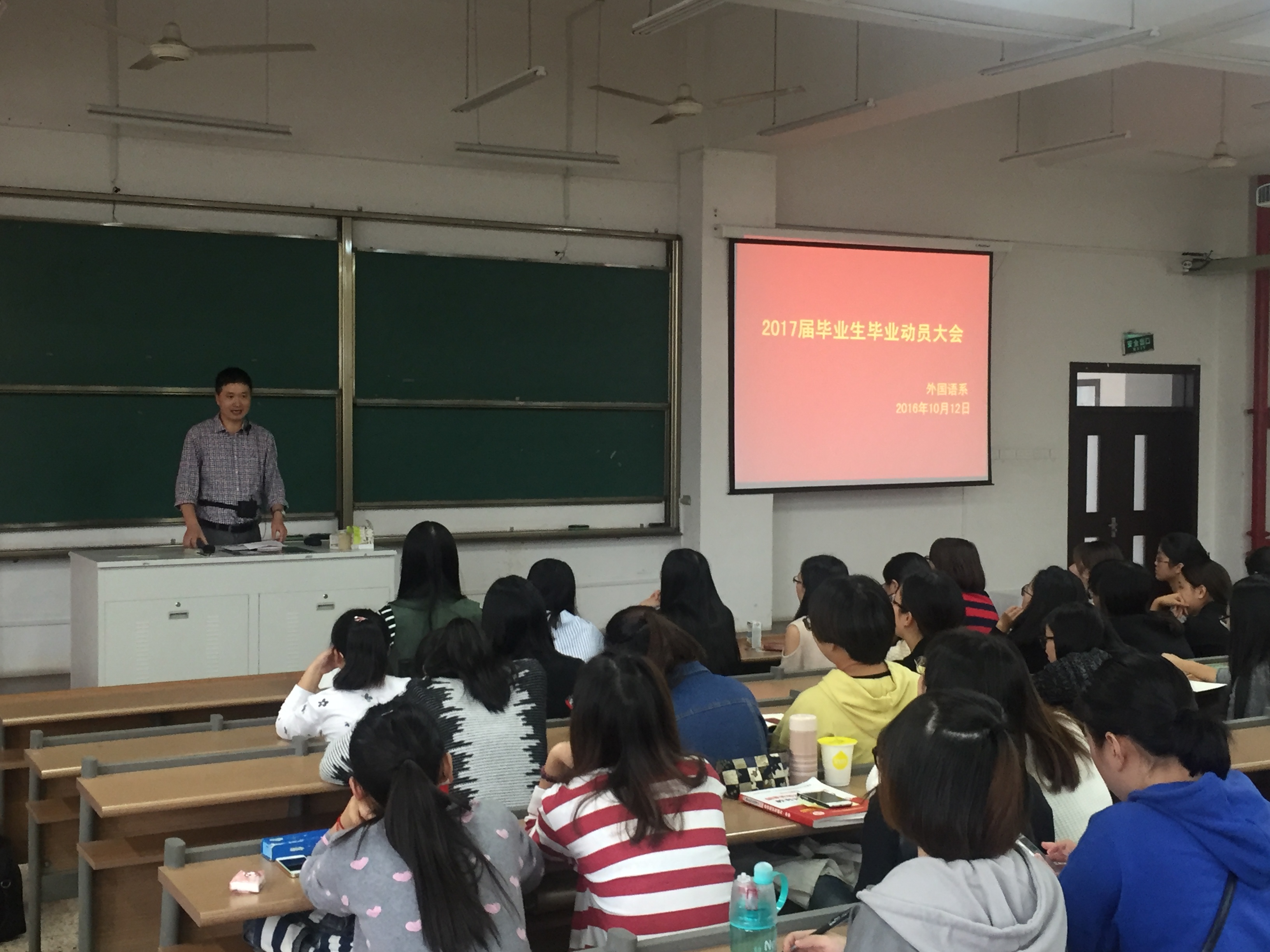 10月12日下午3点,外国语系召开了2017届毕业生动员大会,外国语系英语专业2013级和英语专升本专业15级全体毕业生参加了此次会议。