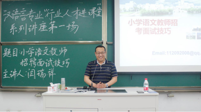 为传授小学语文教师面试的经验,解决学生相关方面的疑惑,增加同学们通过考试的自信,4月13日晚上18时30分,语言文学分院在4-201举行了“行业人才进课堂”专题讲座。讲座由刘金荣老师主持,绍兴文理学院硕导闫瑞祥老师受邀参加。分院的众多学子到场学习。