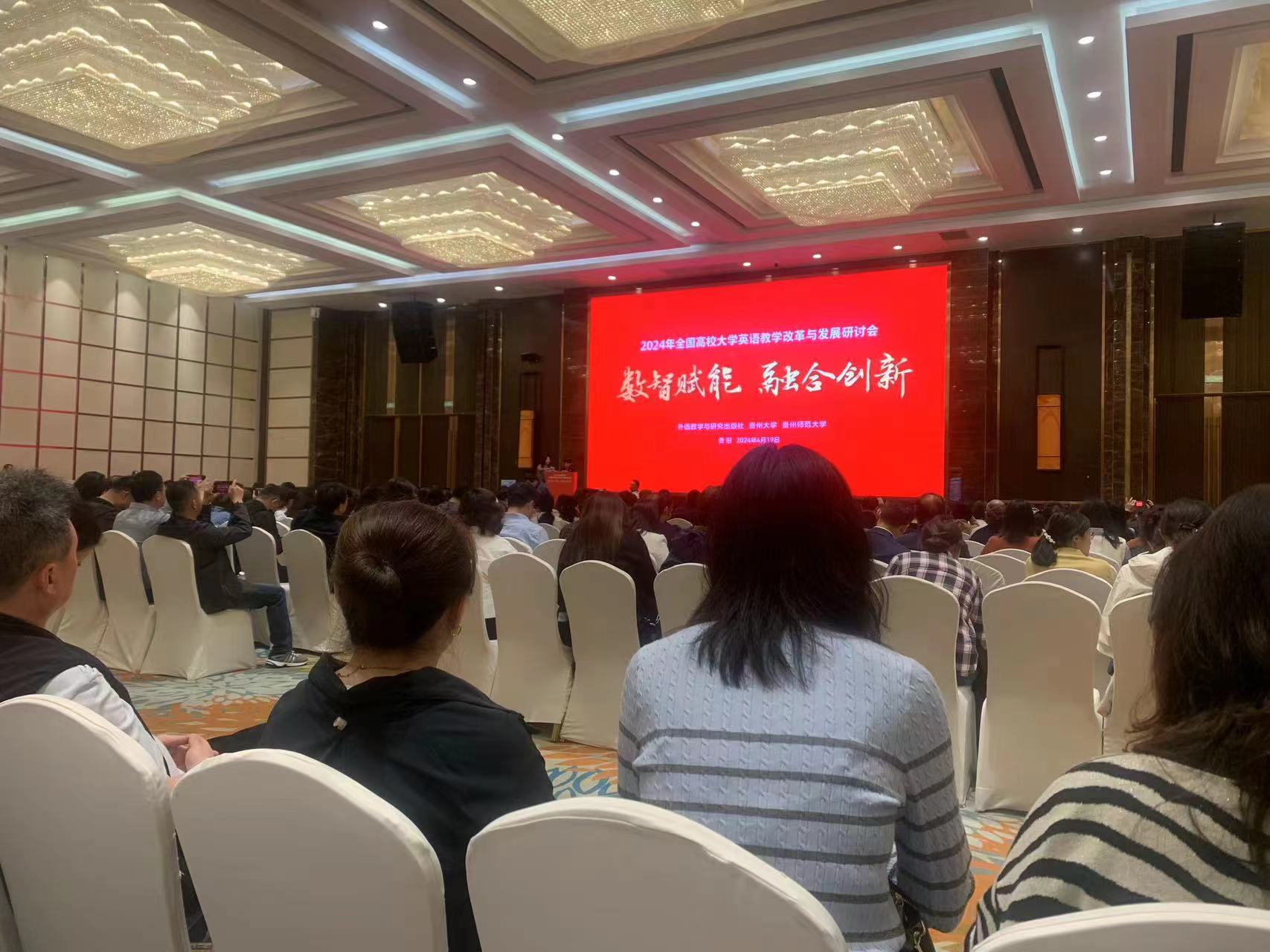 会议由外语教学与研究出版社、贵州大学和贵州师范大学举办。会议的目的是为全面贯彻落实党的二十大精神,推动高校大学英语教学深化改革、创新发展,为培育发展新质生产力注入新动能,助力构建教育高质量发展新机制,高校大学英语教学改革与发展研讨会。会议主题为“数智赋能,融合创新”,旨在推动数智融合,实现智能技术与教育教学深度融合,赋能学生全面发展与教师素养提升,助推教育教学创新升级;促进学科融合,根据“四新”建设目标,对接相关学科和领域,深化大学英语教学改革,培养高素质复合型人才;深化产教融合,构建协同育人机制,破解人才培养和产业需求“两张皮”难题,助力提升人才自主培养质量“。