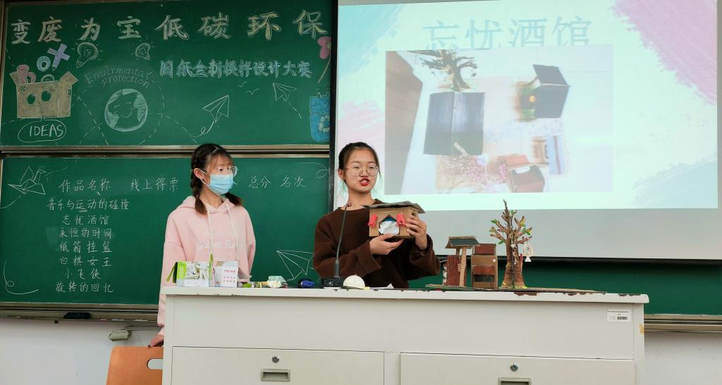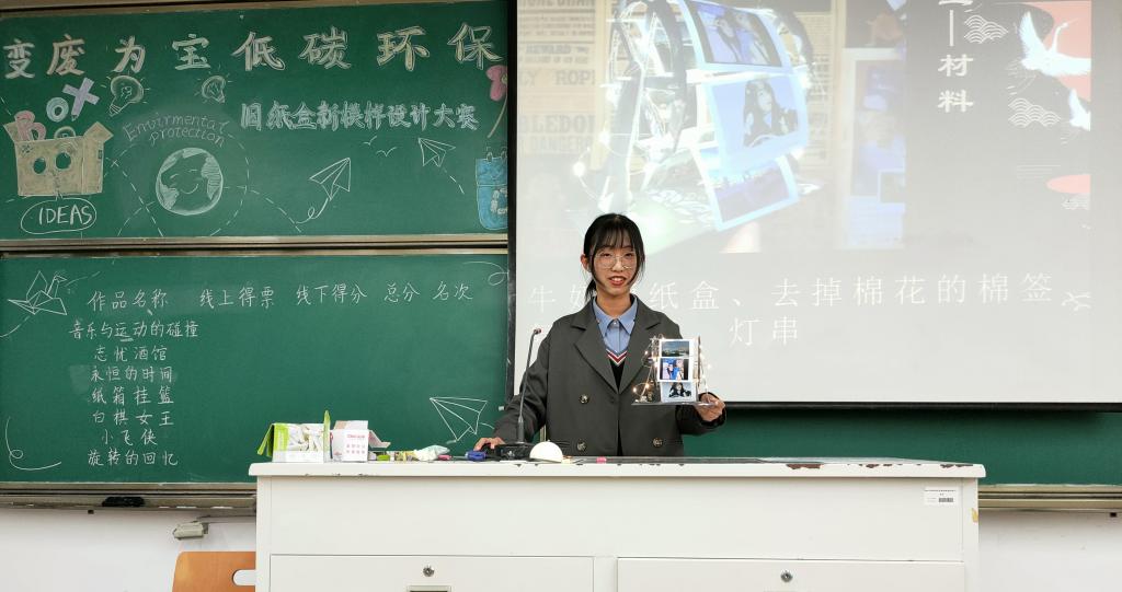 4月15日18:30,语言文学分院在3-205教室举行了“变废为宝·低碳环保”旧纸盒新模样设计大赛,参赛团队、大众评审皆准时到场。