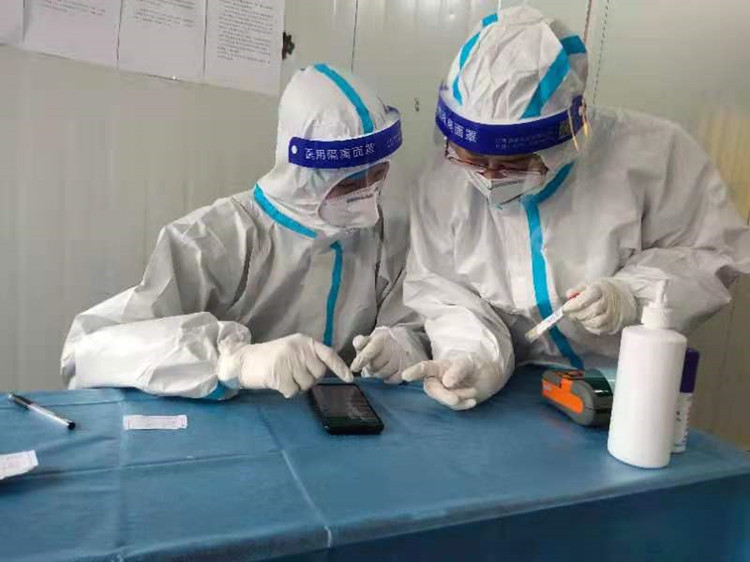 十大买球张宸同学(图左)疫情期间参与当地卫生服务中心核酸检测志愿服务工作
