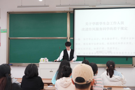 会议后期,黄满从宏观角度转向微观角度,进一步解释学生会成员改进工作作风事宜。黄满指出,恪守学生本分是最基本的要求,即遵守法律法规和校纪校规、勤奋学习、培养科学精神,要由表及里实现全方面的发展。在此基础上,学生会成员还应牢记服务宗旨、永葆理想情怀,公私分明、甘于奉献;要以谦虚的态度勤勉做事,践行学生会宗旨,摒弃一切庸俗习气,努力建设充满朝气、干净纯粹的组织文化。
