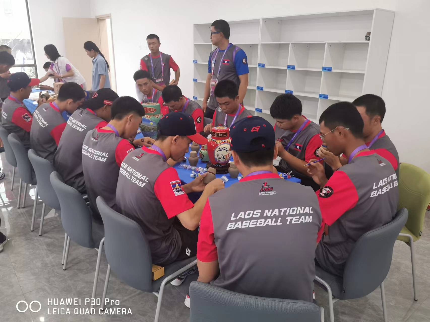 我班亚运会志愿者帮助老挝棒球运动员体验绍兴花雕工艺