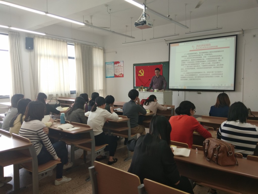 2018年10月17日下午14:00,教工第二党支部在教学楼4-403教室以“党支部组织生活会议内容及记录时应把握问题”召开支部大会,由语言文学分院教工第二党支部书记任荣主讲党课,支部全体党员出席。