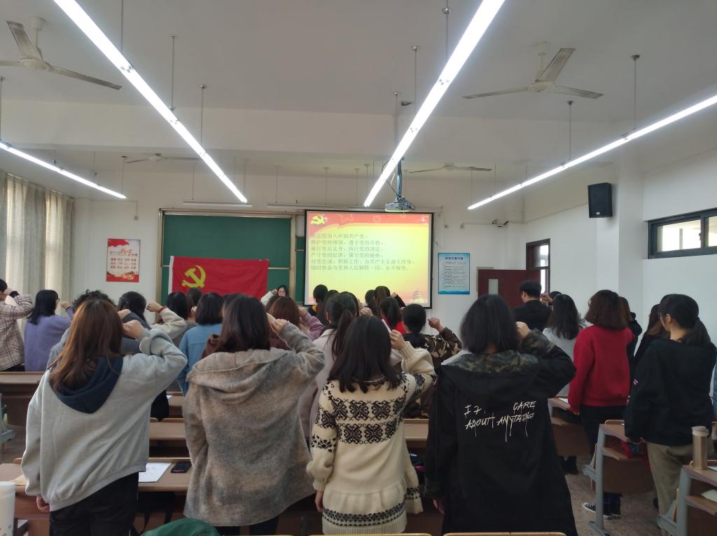 最后,由有表决权的正式党员对发展对象进行无记名投票表决。最终,经无记名投票表决,同意接收金佳希等42名发展对象为预备党员,并在4-309教室进行了集体宣誓活动。