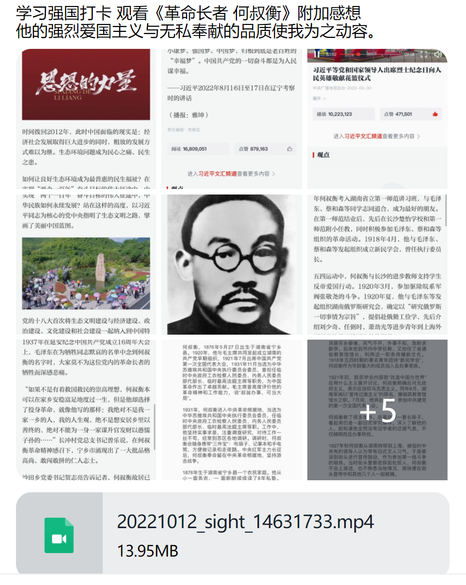 活动开展于10月20日至10月31日,为期20天。同学们踊跃报名,积极参与每日打卡,呈现出良好的学习氛围。打卡形式多样,主要为上传与党史等红色文化相关的照片、视频、音频等,内容积极向上,充满正能量。并且,短短20天的学习已然让学党史学习融入同学们的日常生活,不断激励同学以实际行动传承红色基因,传承红色精神,培养浩然正气。